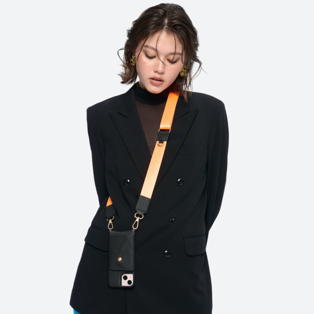 The Elettra Lanyard features a striking 20.2″ strap, expertly crafted from vibrant orange nylon and supple premium black leather, combining sophistication with practicality. Designed to be effortlessly worn around the neck, it elevates your ensemble with a refined yet bold statement. Perfect for those who embrace modern elegance with a hint of edge, this accessory is the ideal complement to any fashion-forward wardrobe.