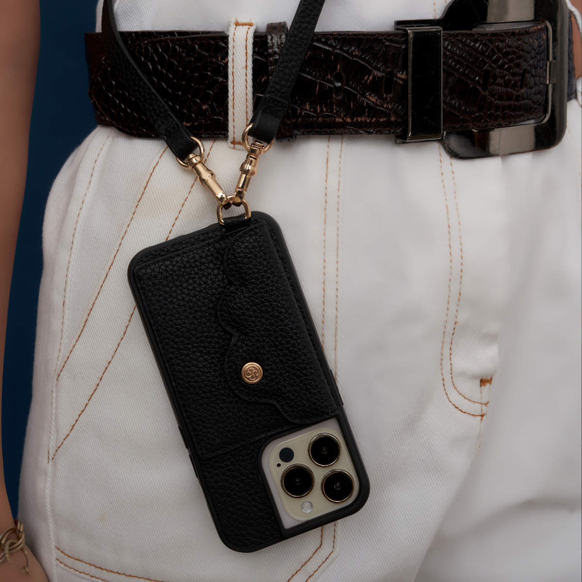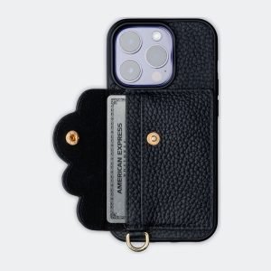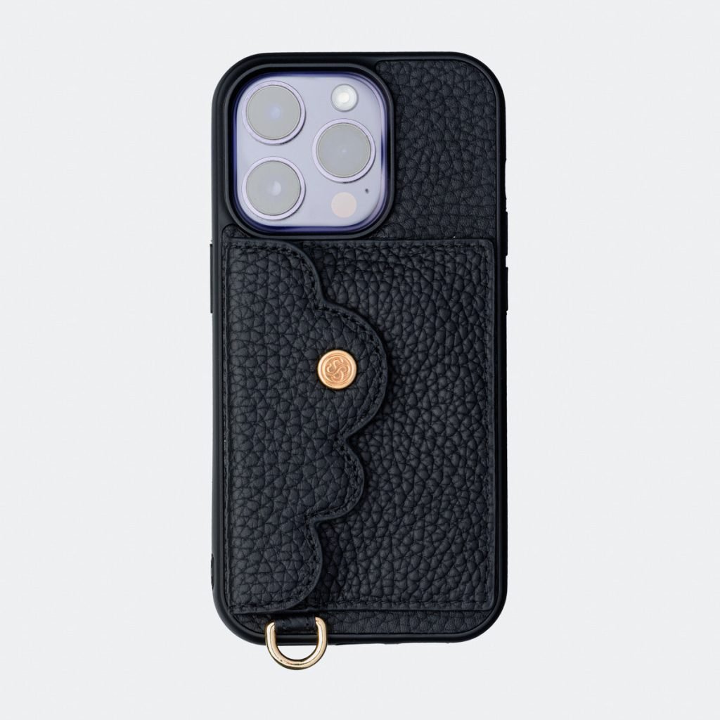 D-ring Pebble leather phone wallet in Black/Gold