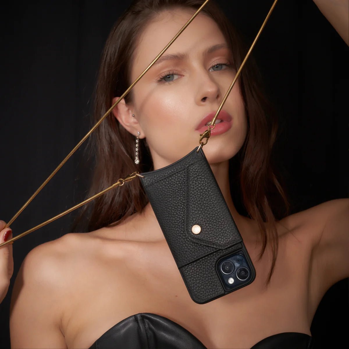 The Lily now featuring an exquisite stainless steel snake chain shoulder strap. Its innovative design redefines style and convenience, providing a chic and practical carrying solution.