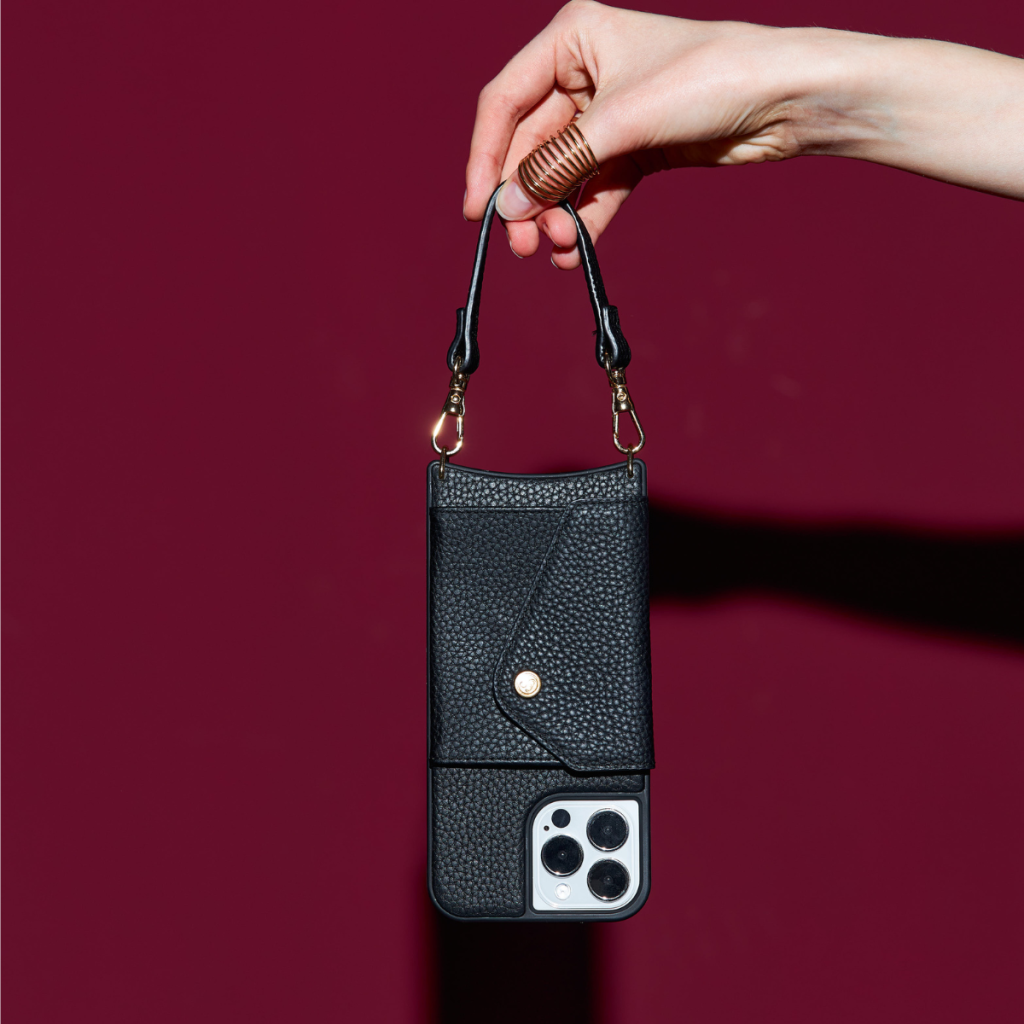 The Olivia wristlet is crafted from genuine, high-quality pebble leather. This versatile accessory boasts a detachable leather strap, offering a chic alternative to the shoulder strap.
