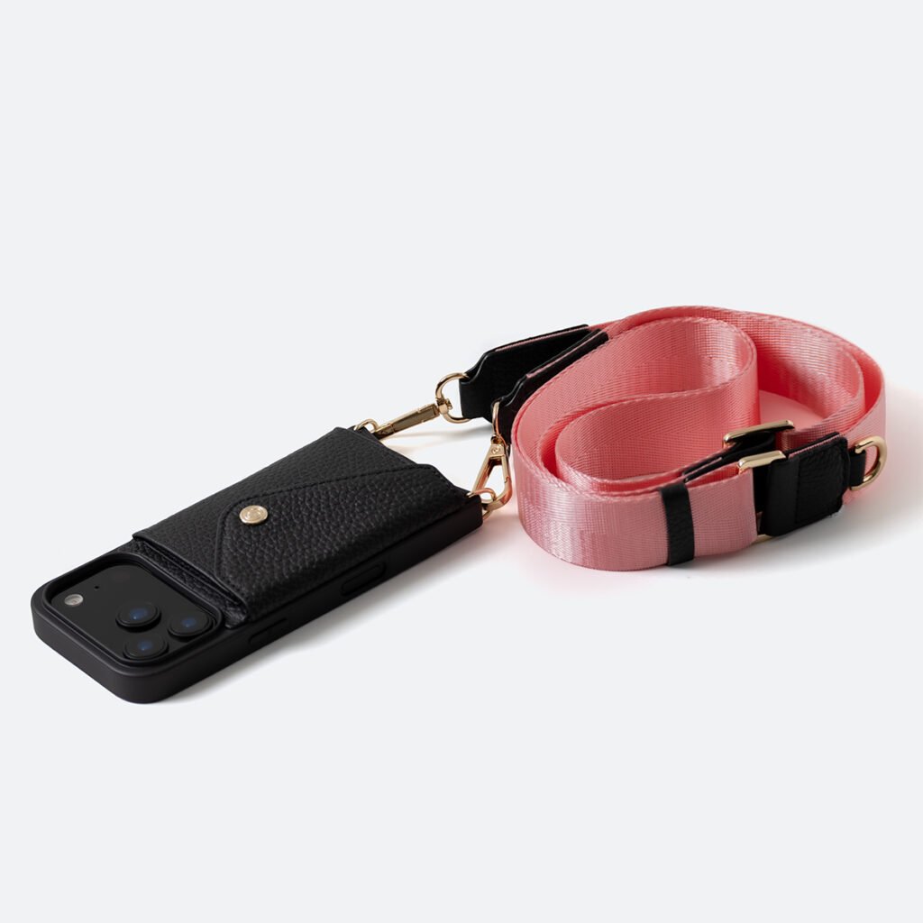 The Elettra Lanyard features a striking 20.2″ strap, expertly crafted from vibrant pink nylon and supple premium black leather, combining sophistication with practicality. Designed to be effortlessly worn around the neck, it elevates your ensemble with a refined yet bold statement. Perfect for those who embrace modern elegance with a hint of edge, this accessory is the ideal complement to any fashion-forward wardrobe.