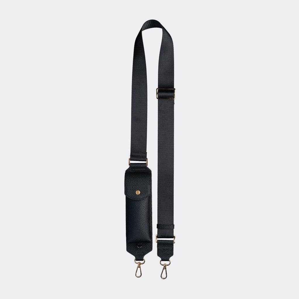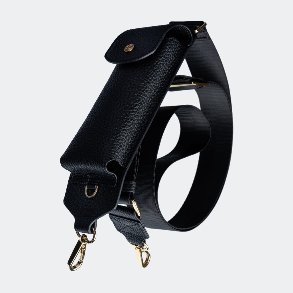 The Giulia Sunglass Pouch features a sleek gold-tone buckle for an exquisite touch. The strap seamlessly detaches for standalone use with your phone case, offering both style and versatility.