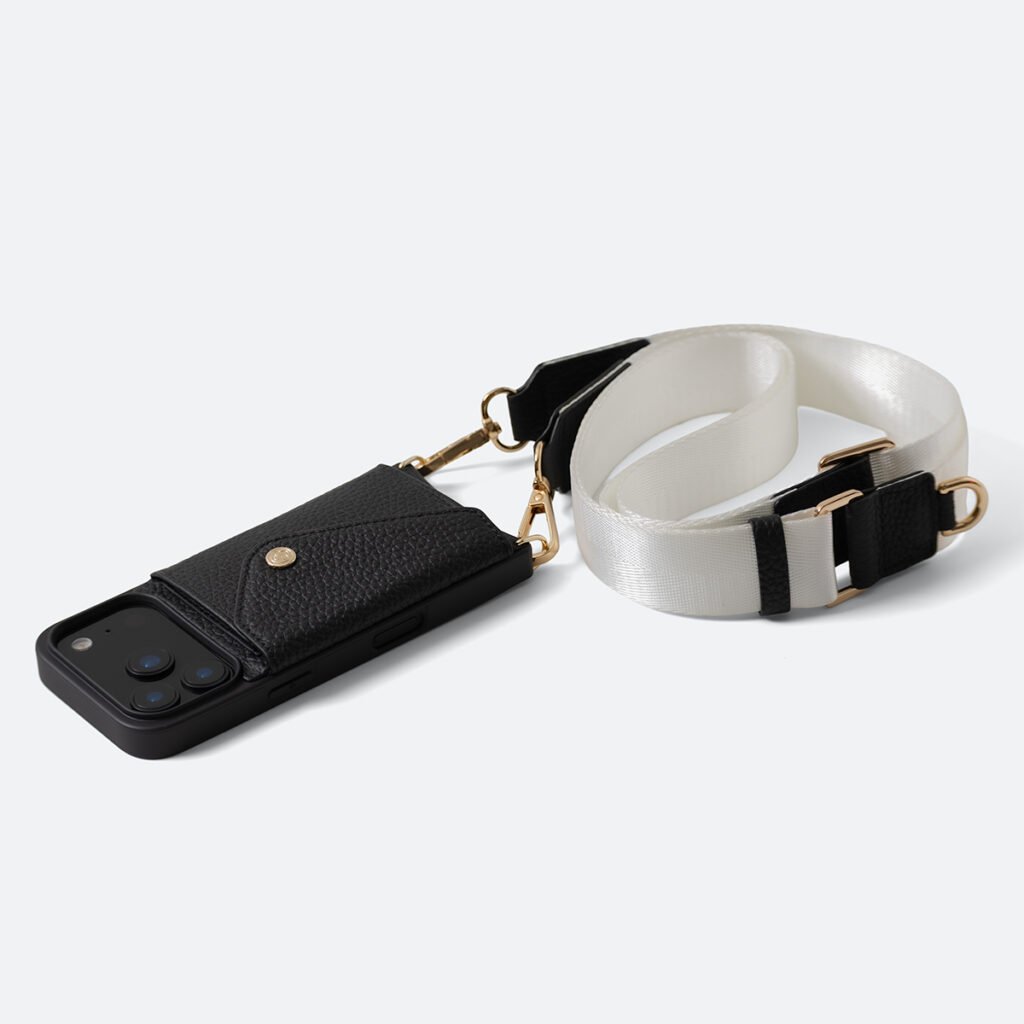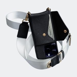 The Elettra Lanyard features a striking 20.2″ strap, expertly crafted from vibrant white nylon and supple premium black leather, combining sophistication with practicality. Designed to be effortlessly worn around the neck, it elevates your ensemble with a refined yet bold statement. Perfect for those who embrace modern elegance with a hint of edge, this accessory is the ideal complement to any fashion-forward wardrobe.